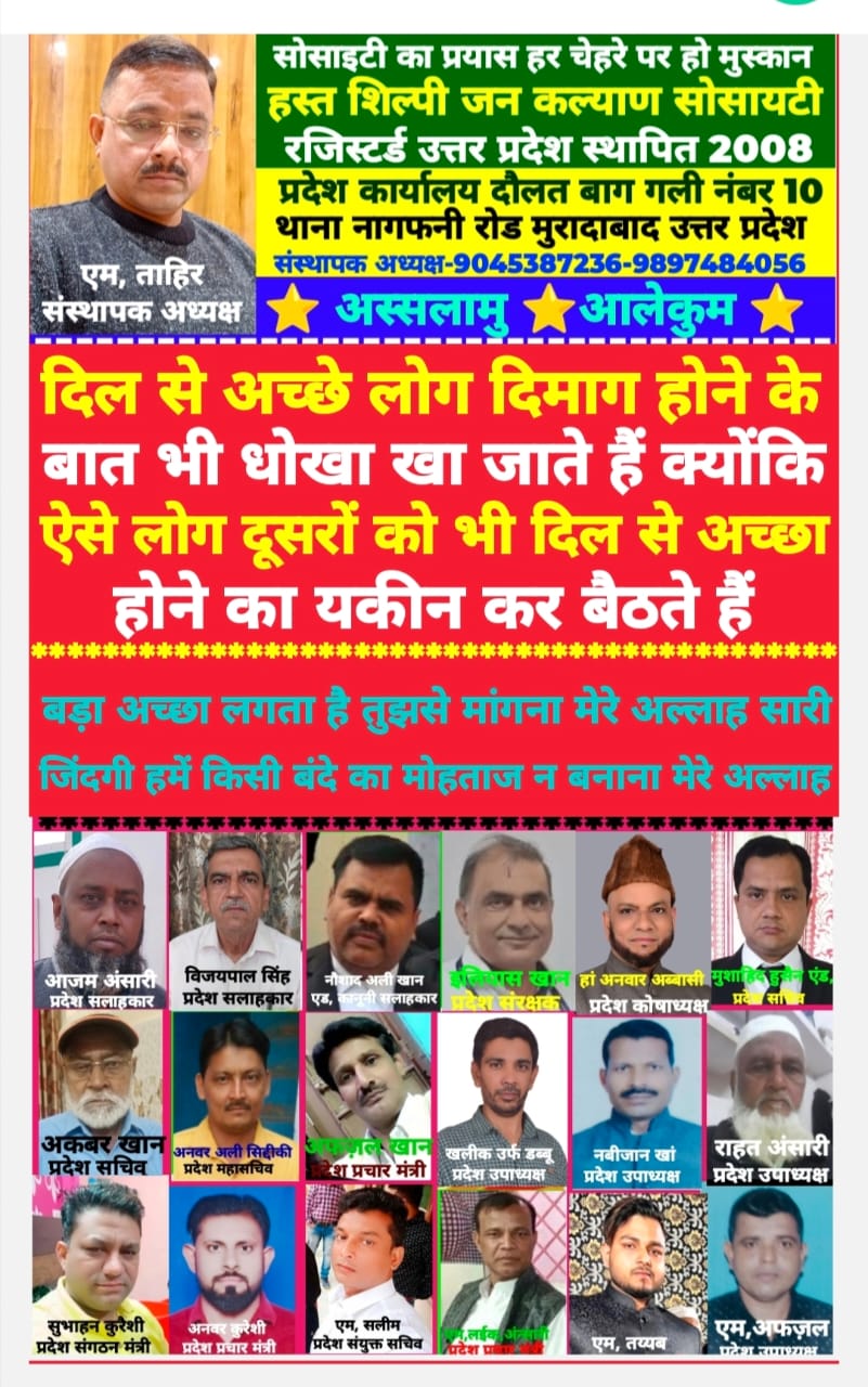 सोसाइटी के राष्ट्रीय कोष अध्यक्ष हाजी अनवार अब्बासी को जिलाधिकारी महोदय मुरादाबाद श्री अनुज सिंह जी व मुरादाबाद विकास प्राधिकरण सचिव हस्त शिल्प सम्मान देते हुए