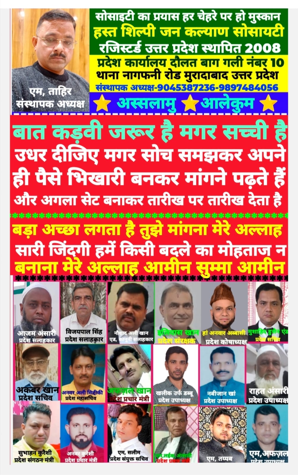 सोसाइटी के संस्थापक अध्यक्ष एम ताहिर ज़रगर को जिलाधिकारी महोदय मुरादाबाद श्री अनुज सिंह जी व मुरादाबाद विकास प्राधिकरण सचिव हस्त शिल्प सम्मान देते हुए