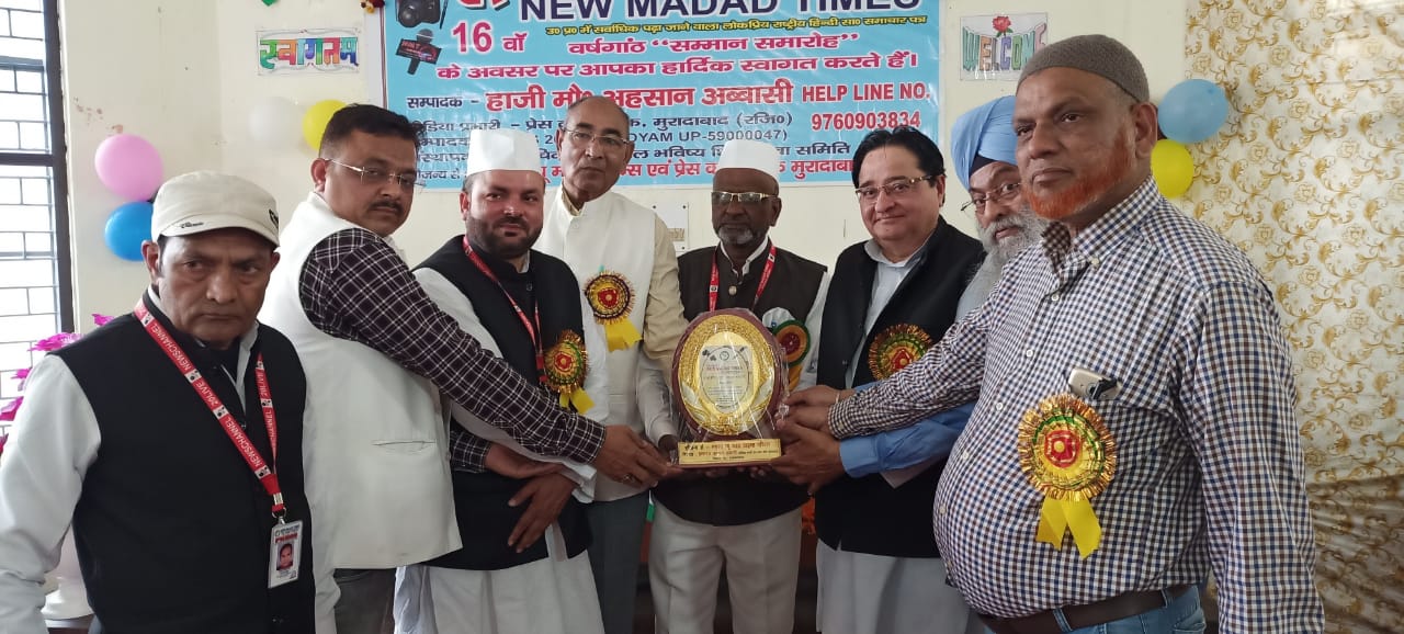 एक अखबार के वार्षिक सम्मेलन में ट्रॉफी प्राप्त करते प्रदेश अध्यक्ष एम ताहिर प्रदेश कोषाध्यक्ष अनवार अब्बासी