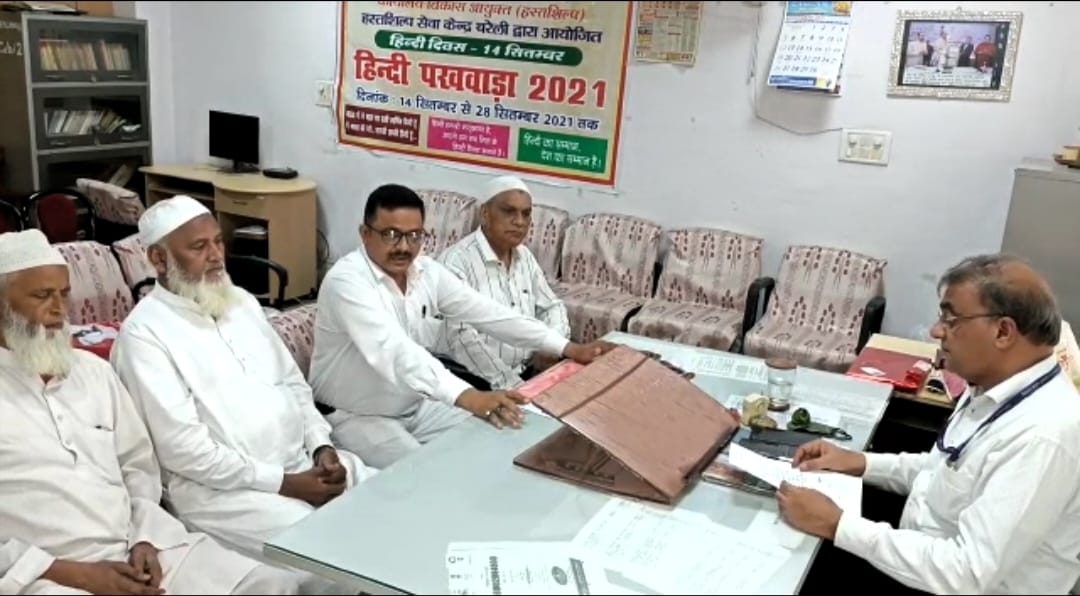विकास आयुक्त हस्तशिल्प विकास आयुक्त महोदय श्री इलियास खान बरेली कार्यालय पर समस्याओं को रखते सोसायटी पदाधिकारी